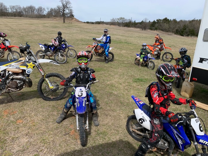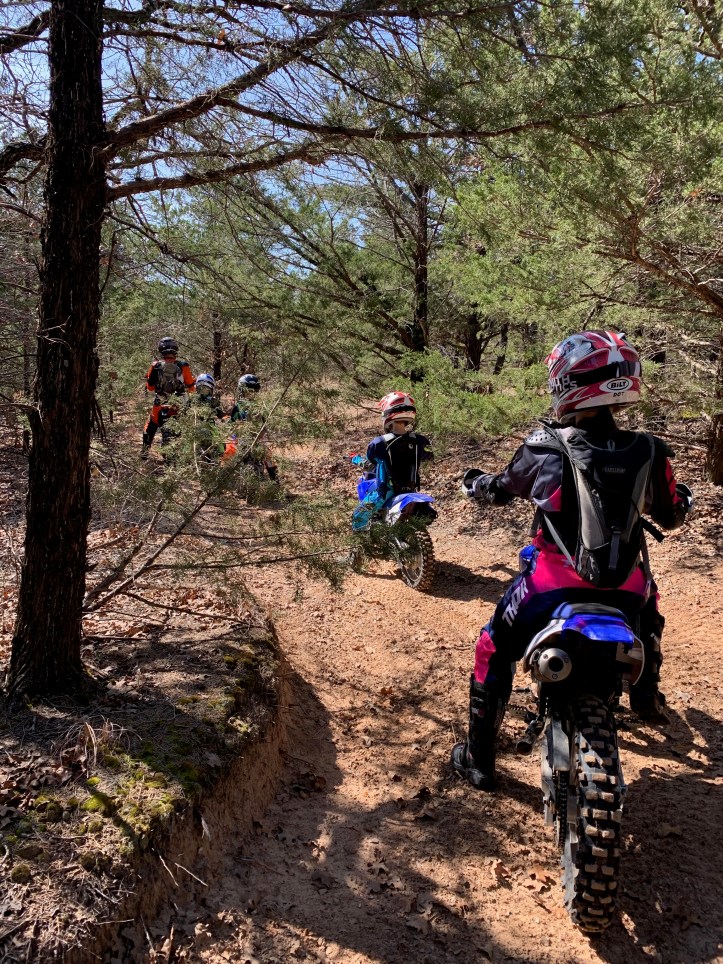 Turned out to be a beautiful week riding in Muenster, Texas with eight of our grands and their parents. It really is unbelievable what these little riders can do and it takes all I’ve got to keep up with them! They have been taught well by their Daddy’s to be smart, safe riders, how to balance, body position, strategy, pick the best line and guts to commit! I have total confidence in all of them, but admittedly, am saying prayers of gratitude when we all are safely home!